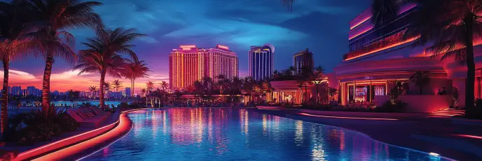 Step into a retro poker lounge with vibrant neon lighting, customized chips, and thematic tables. A nostalgic 90s vibe where gameplay is for amusement only. Must be 21+ with valid ID.